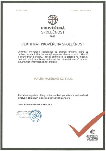 01. 06. 2015 | Dostali jsme CERTIFIKÁT PROVĚŘENÉ SPOLEČNOSTI